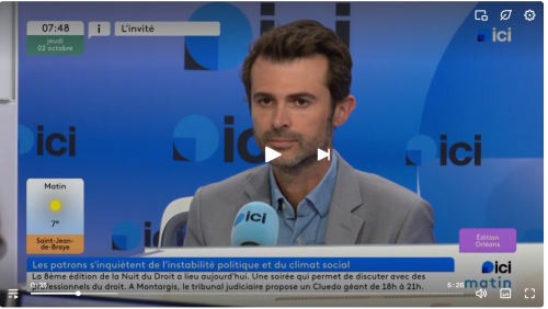 Le jeudi 2 octobre, Tristan LHEURE, Vice-président de l’UDEL, était l’invité de l’émission Ici Orléans. Il y a exprimé les préoccupations grandissantes des chefs d’entreprise face à l’instabilité politique et au climat social tendu.